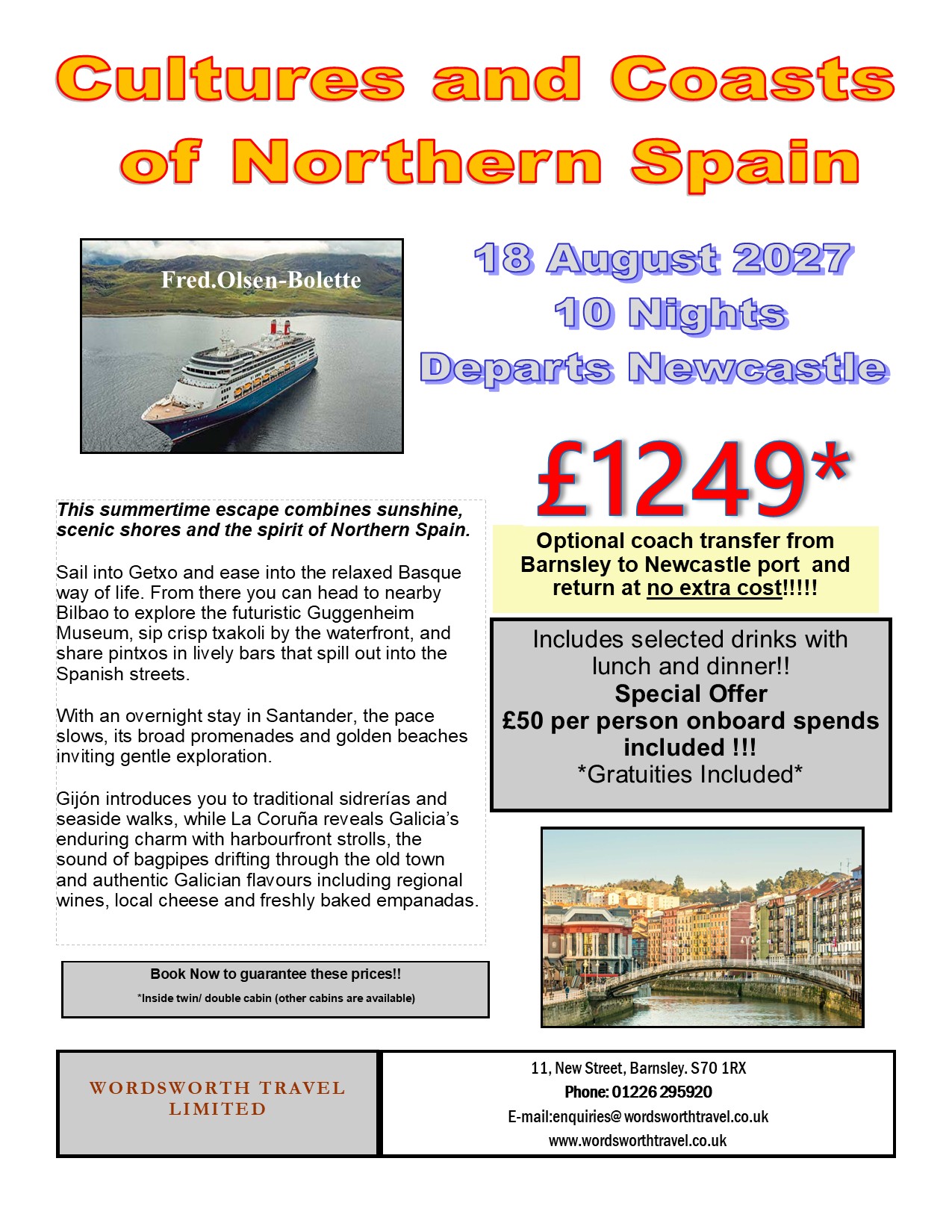 Please contact our sales team to discuss your perfect holiday 01226 295920 enquiries@wordsworthtravel.co.uk